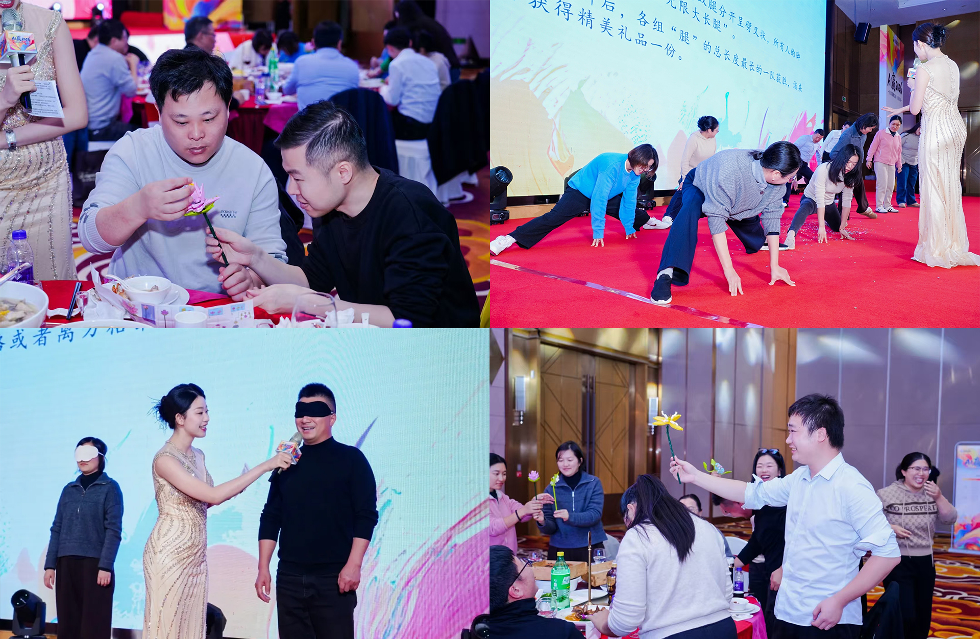 現(xiàn)場(chǎng),精彩紛呈的節(jié)目表演、緊張有趣的互動(dòng)游戲與多輪驚喜抽獎(jiǎng)輪番上演?!斗e木拼搭》、《無(wú)限大長(zhǎng)腿》、《蒙眼踏步》等游戲妙趣橫生,大家在協(xié)作中增進(jìn)默契,歡聲笑語(yǔ)不絕于耳。幸運(yùn)抽獎(jiǎng)環(huán)節(jié)更是驚喜連連,不斷點(diǎn)燃現(xiàn)場(chǎng)的氣氛,彼此的情誼也在觥籌交錯(cuò)間愈發(fā)深厚。
